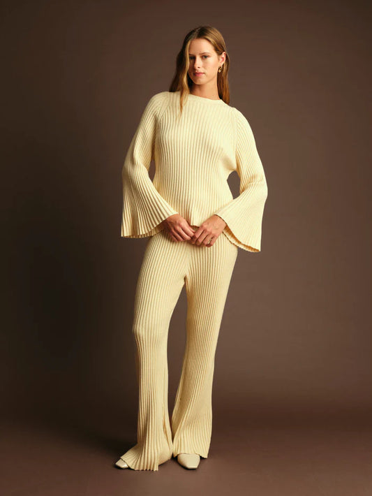 Deluc | Pantalon en maille "Noel"- Ecru mélangé