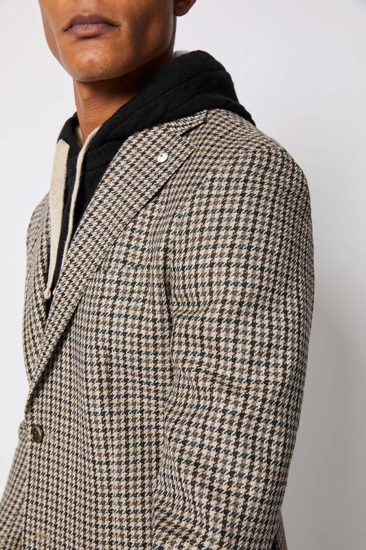 L.B.M. 1911 | Veston à motif pied-de-poule- Marron/Gis/Noir