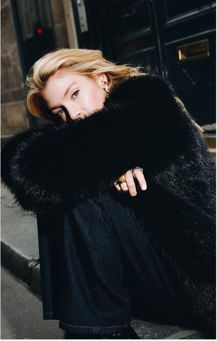 Jakke | Manteau en fausse fourrure et faux cuir ''Palladino'' - Noir
