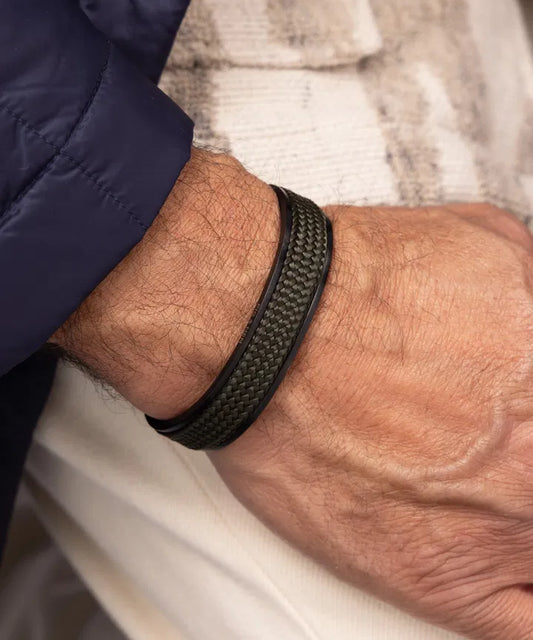 Pig & Hen | Bracelet ''Navarch 14 mm'' - Noir / vert forêt