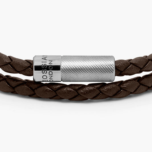 Tateossian | Bracelet Pop Rigato en cuir marron italien double tour avec argent sterling