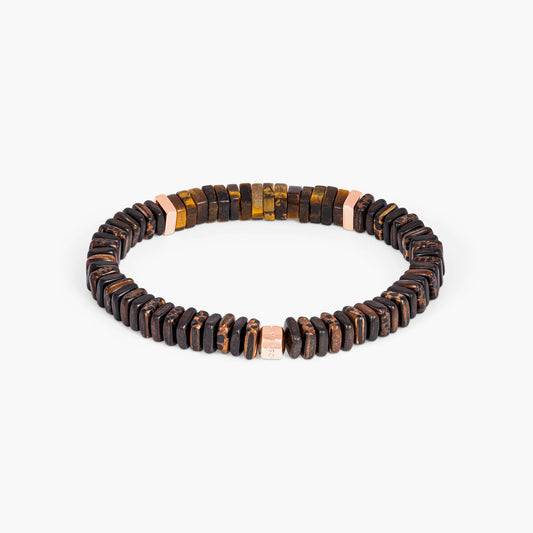 Tateossian | Bracelet Legno en oeil de tigre, palmier et bois d'ébène avec argent massif plaqué or rose