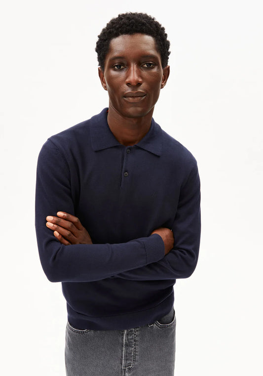 ARMEDANGELS | Polo en maille à manches longues - Bleu nuit