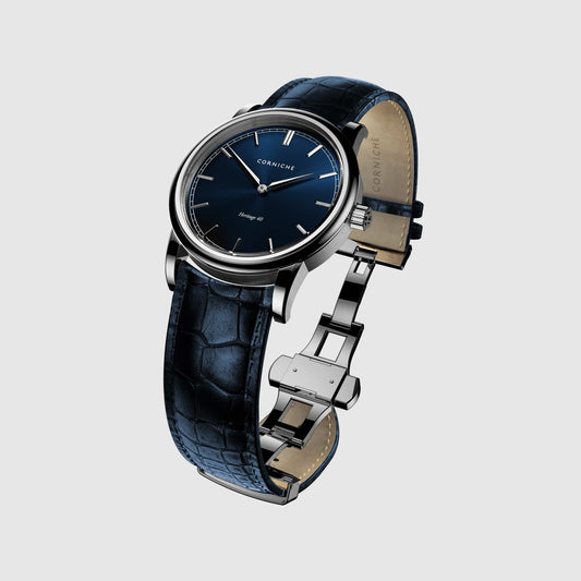 Corniche Mens Heritage 40 Stainless Steel Watch with Blue Dial