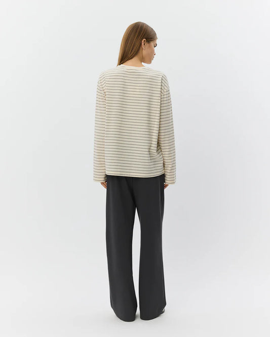 SOFIE SCHNOOR | T-shirt "CECE" à manches longues et encolure bateau- Blanc cassé/ noir