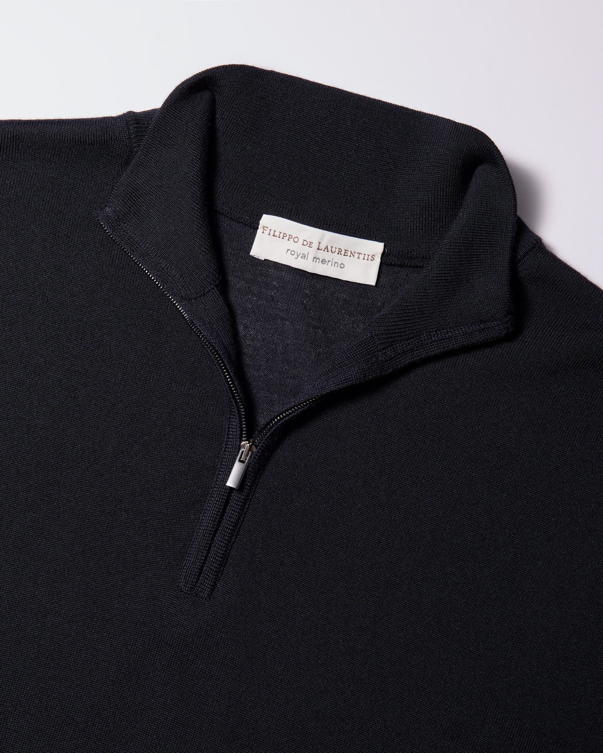 Filippo De Laurentiis | Pull demi-zip en laine mérinos royale - Bleu