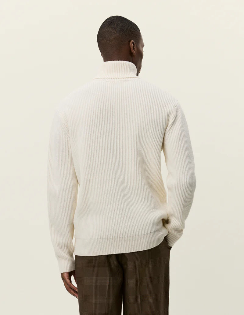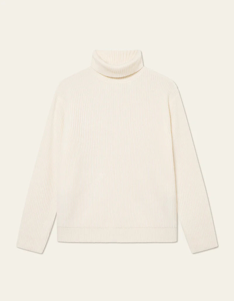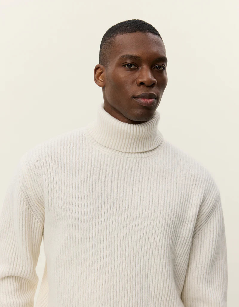 Un de nos incontournables pour les temps froids. L'Eddie est confectionné en laine mérinos épaisse avec une large côte et un col roulé volumineux. Conçu pour vous garder au chaud, il vous accompagnera pendant des années.