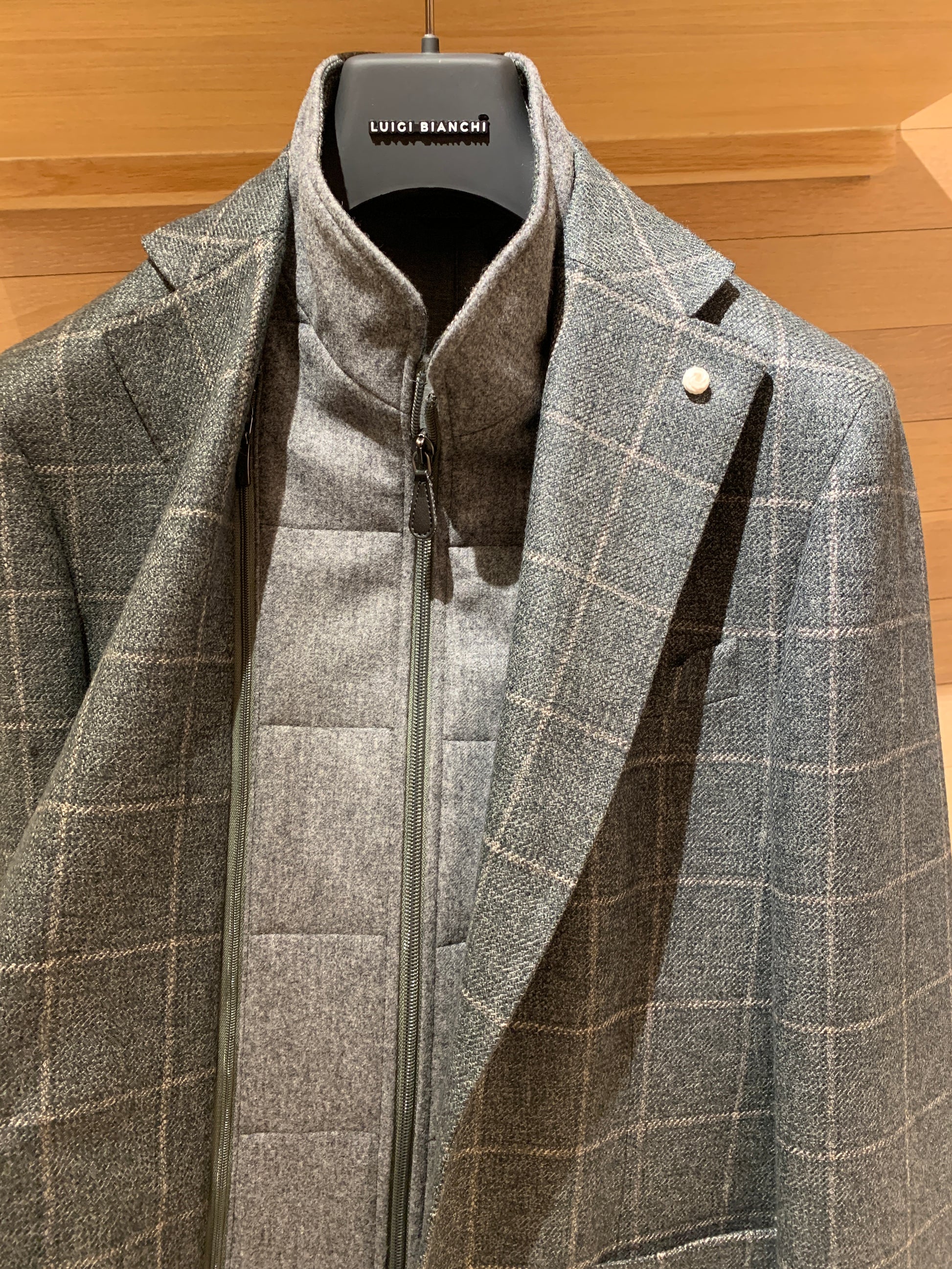 Luigi Bianchi | Veste de sport hybride en laine à carreaux avec bavette - Sauge/Gris