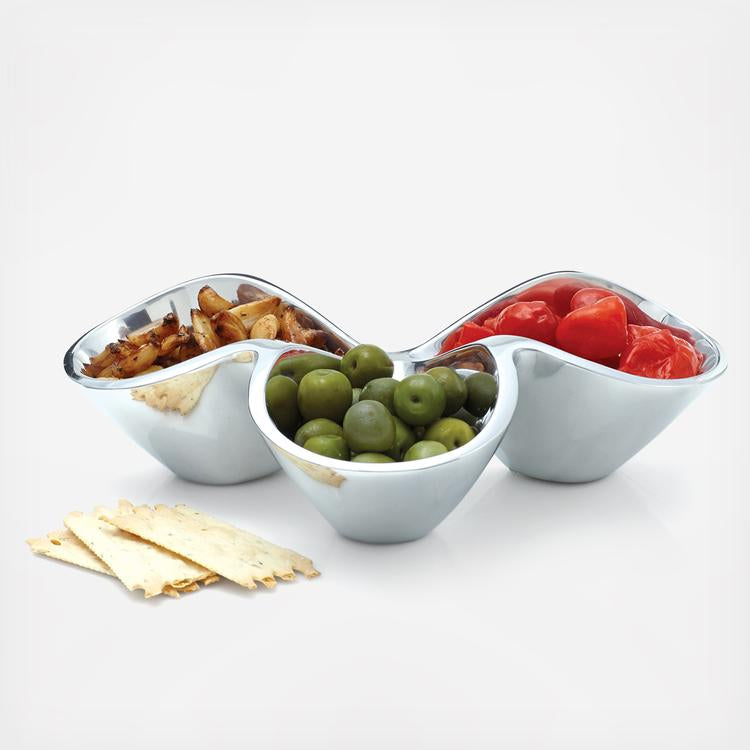 Le plateau à condiments Bella Triple Condiment Server est une manière raffinée de présenter et de servir un trio de condiments. Il possède le style et la substance innés d'une pièce de famille. Le plateau peut être chauffé ou refroidi afin que les condiments restent à la température idéale. Un ajout brillant et artistique à toute table.