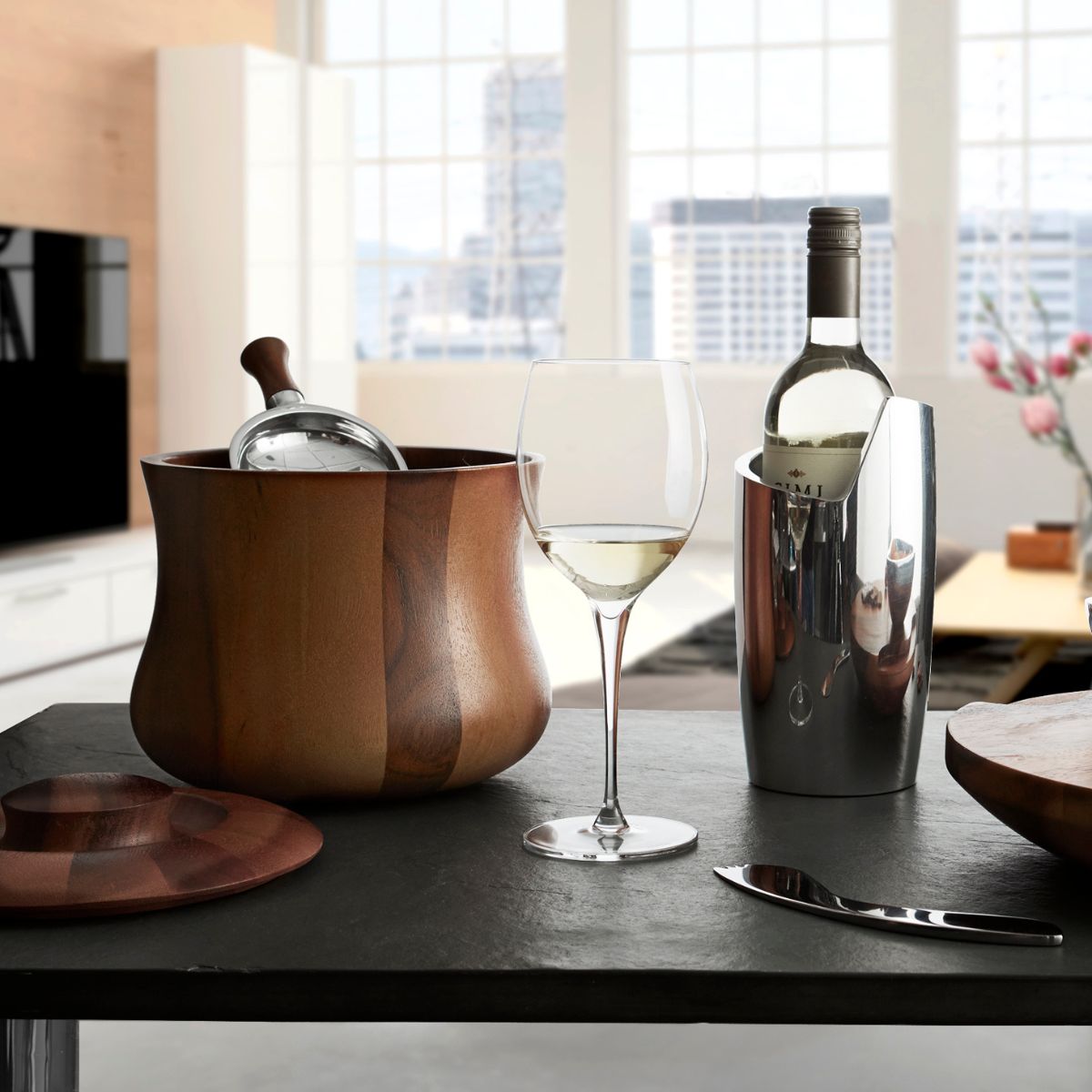 Fabriqué en alliage Nambé et en bois d'acacia.