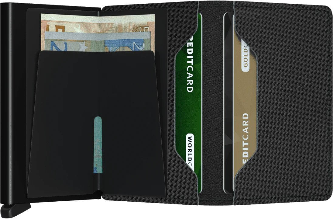 Grâce à son profil fin, le portefeuille mince se glisse parfaitement dans toutes les poches. L'ouverture extérieure est très large pour accueillir les cartes, les billets et les reçus. Le mécanisme "Cardprotector" vous permet de faire glisser les cartes d'un simple mouvement, tandis que l'aluminium protège vos cartes contre la flexion, la rupture et les communications sans fil indésirables.