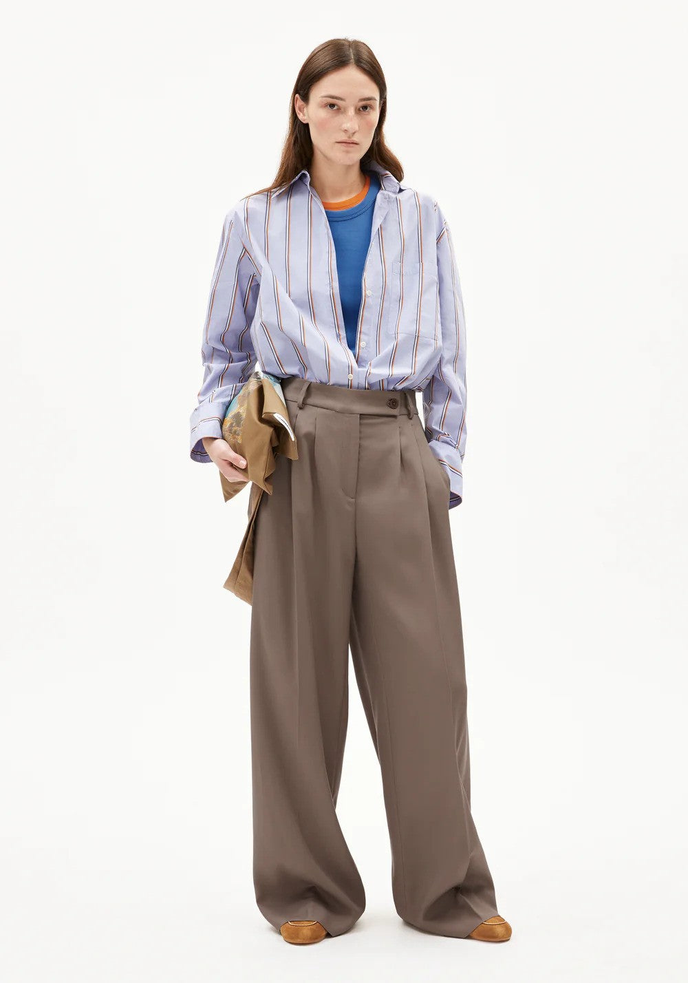 Le pantalon KAAYUA séduit par son tissu épais à structure sergée. Sa taille haute et ses jambes larges offrent une grande liberté de mouvement, tandis que ses plis et ses poches latérales ajoutent une touche pratique. Fabriqué en TENCEL™ Lyocell et élasthanne.