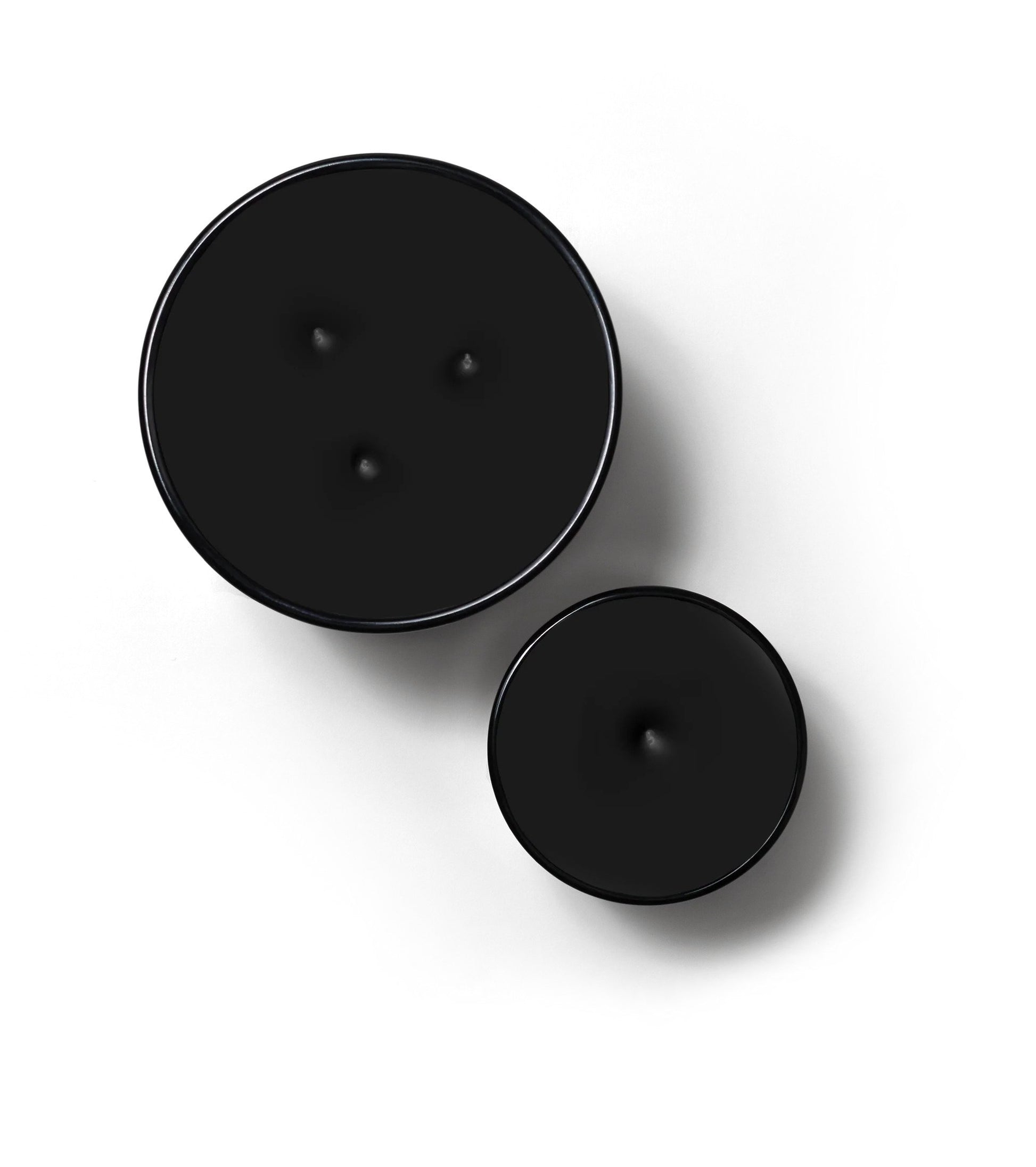 Cire de coco et d'abeille teintée, mèche en coton tressé, dans un gobelet en verre dégradé mat avec étiquette noire. Livré dans un carton gaufré en dégradé mat avec une étiquette noire métallique. 240 g (8,5 onces). 8,6 cm de hauteur. Durée de combustion d'environ 50 heures.