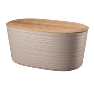 Corbeille à pain fabriquée à partir du recyclage de vingt-sept bouteilles d'eau jetables 100% post-consommation. Avec couvercle en bois de bambou. Particulièrement polyvalente, elle constitue également un excellent organisateur de cuisine.