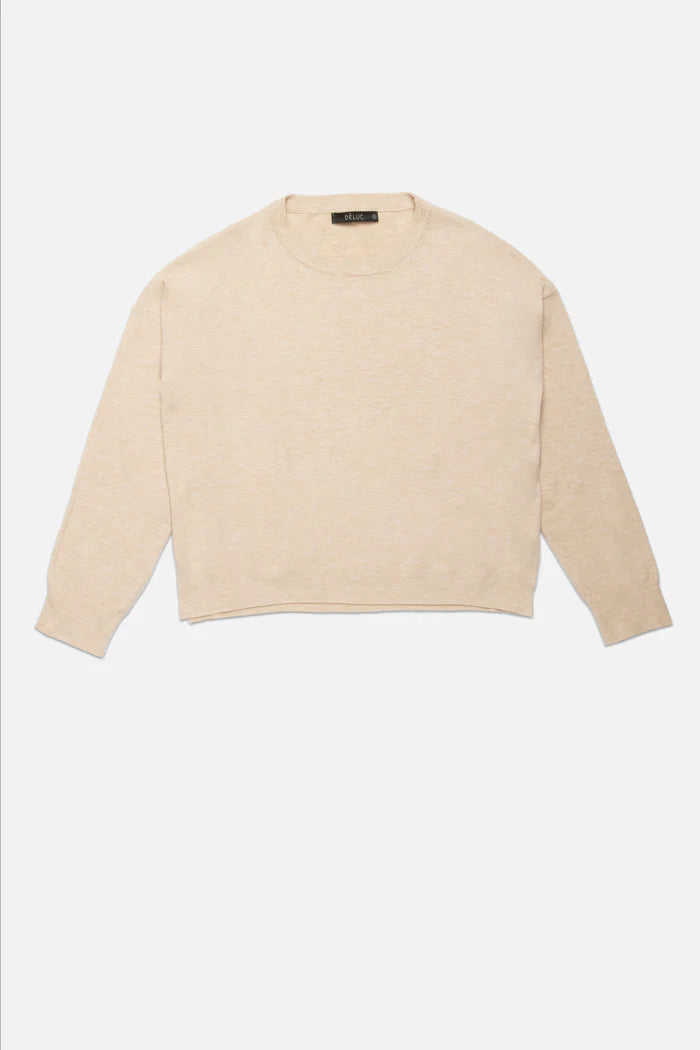 Pull en viscose mélangée à col rond et manches longues. Fentes sur les côtés des poignets. Longueur raccourcie.