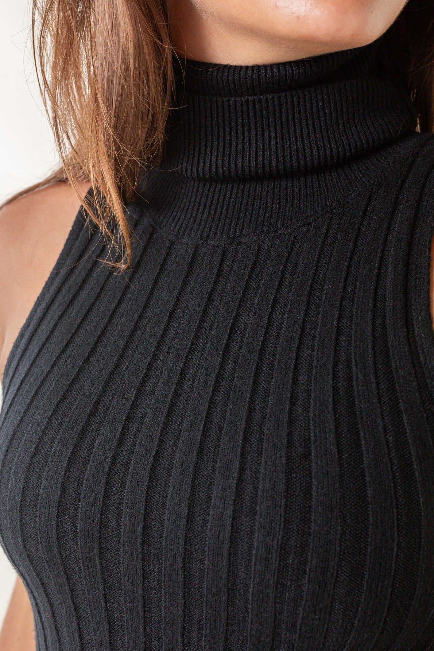 Haut sans manches en maille viscose mélangée avec col roulé
