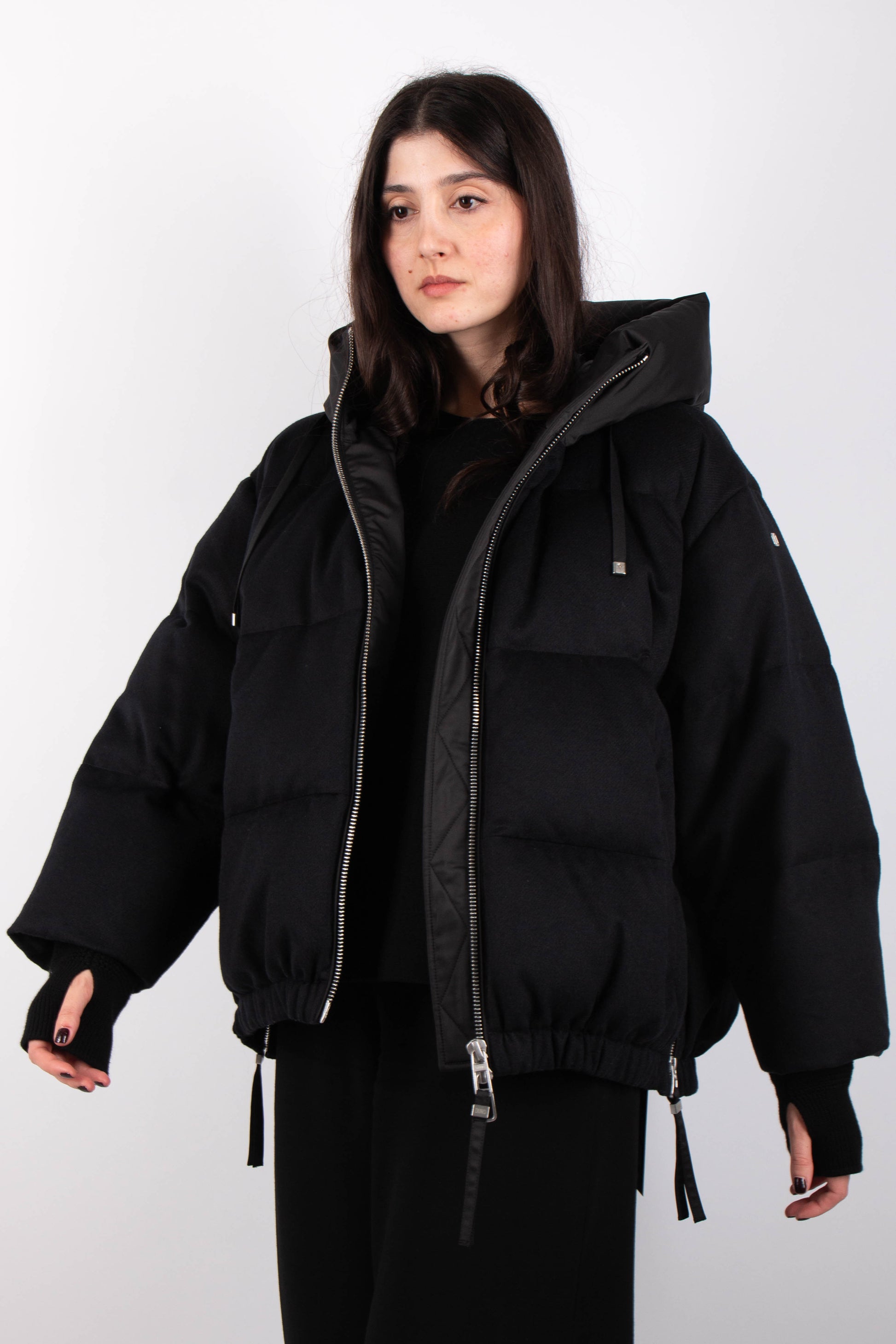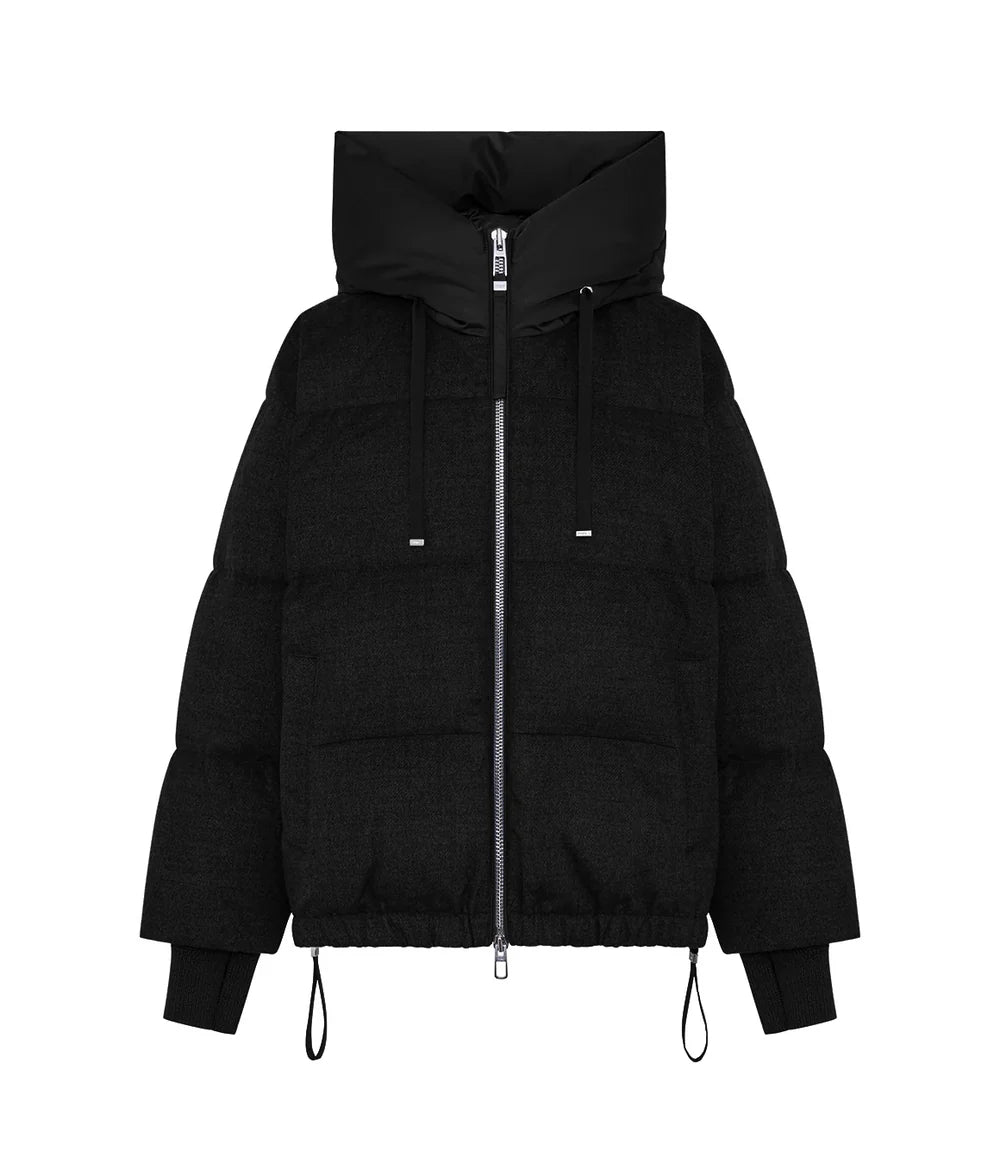 Un compagnon luxueux pour l'hiver : la doudoune oversize de Duno allie un look sophistiqué en laine à des fonctionnalités techniques, offrant à la fois chaleur et style.