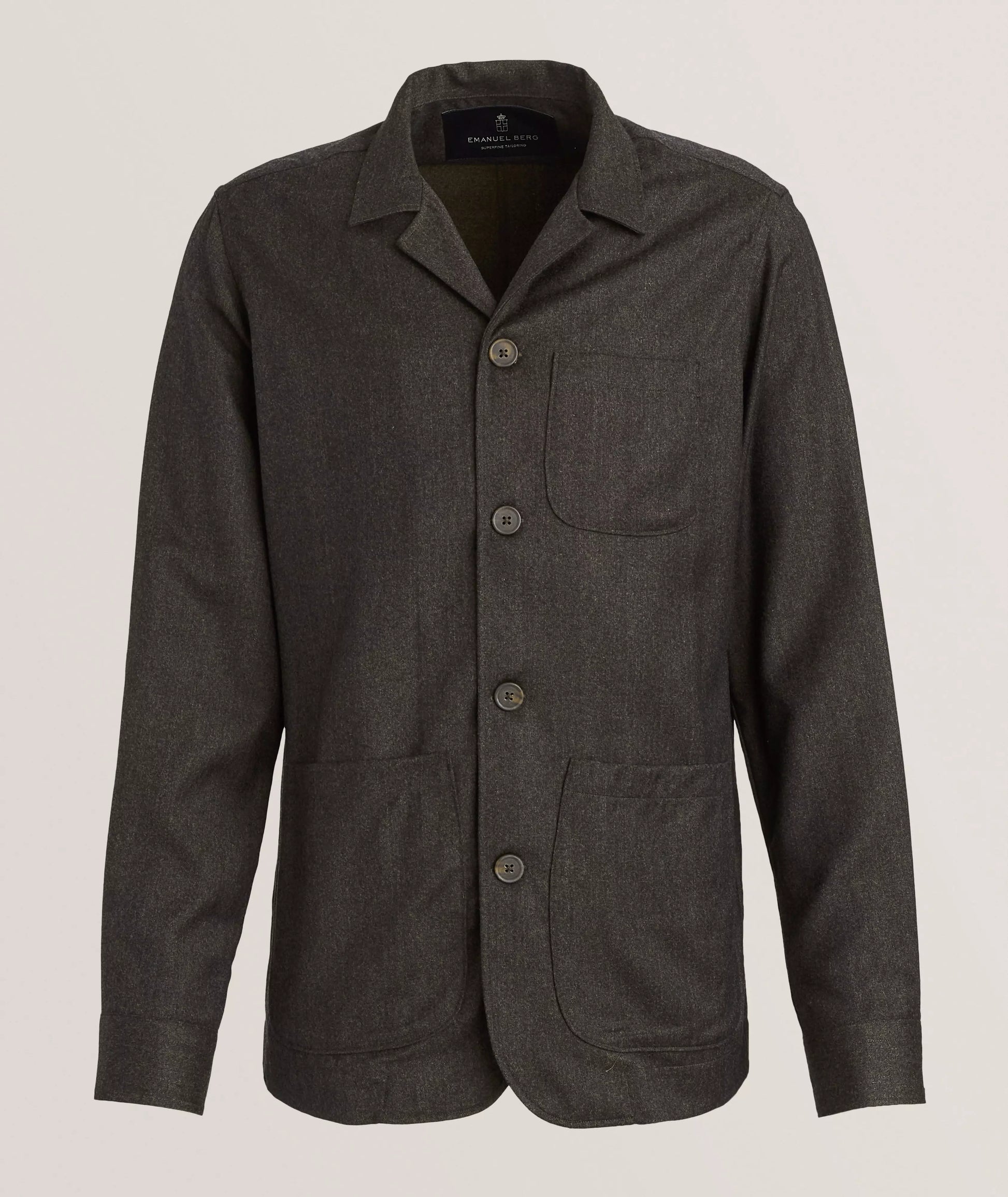 Confectionnée en flanelle de pure laine, cette veste chemise non doublée allie une structure souple à une élégance décontractée. Légère mais chaude, elle est idéale pour les superpositions lors des changements de saison, offrant le raffinement d'une veste et le confort d'une chemise.