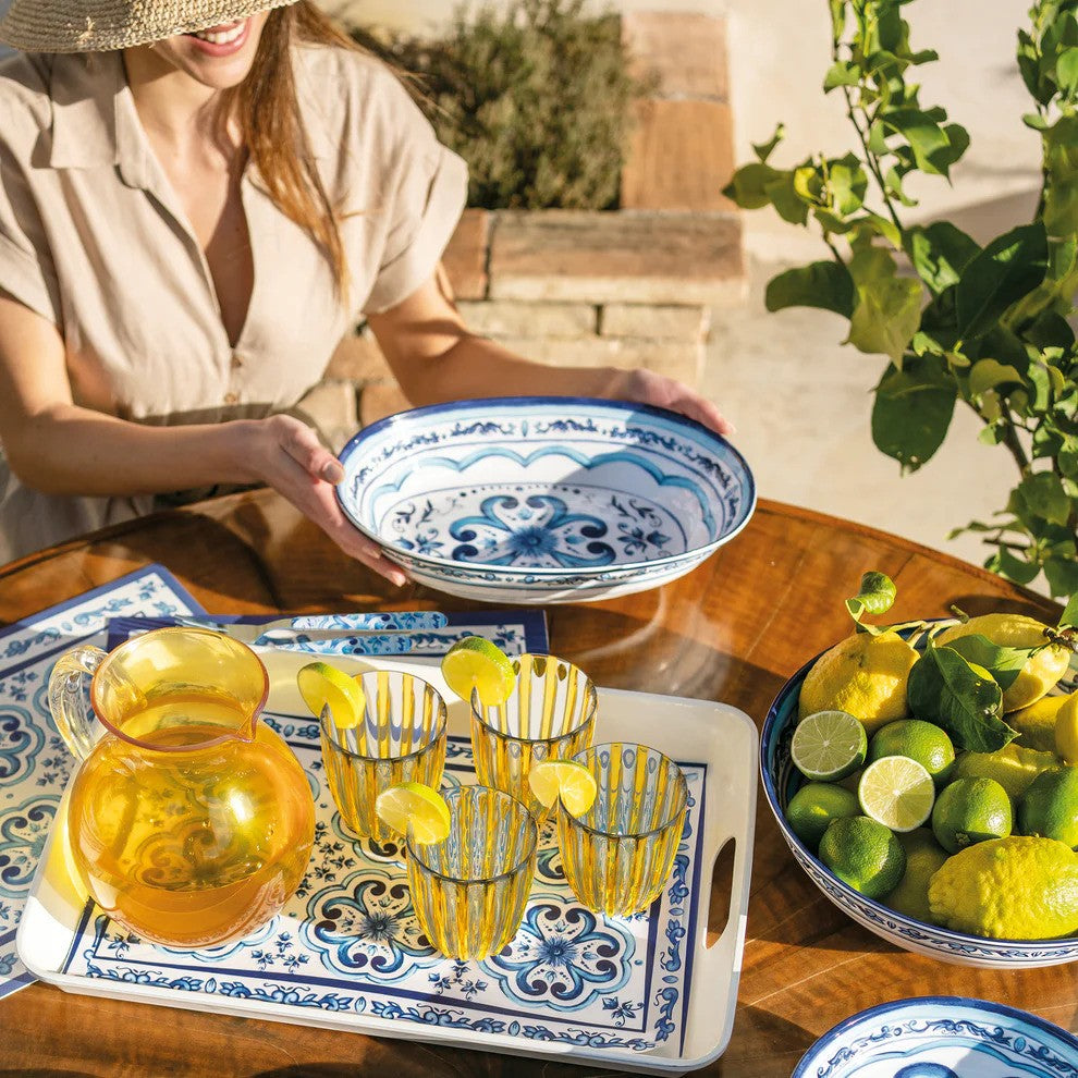Le bol à risotto en "mélamine" évoque les senteurs et les couleurs des fleurs de printemps et des citrons, apportant à la table une touche de fraîcheur et de gaieté. Il est idéal pour une fête en plein air, un brunch informel ou une occasion spéciale. À utiliser aussi en plat de service ou corbeille à fruits à placer au centre de la table.