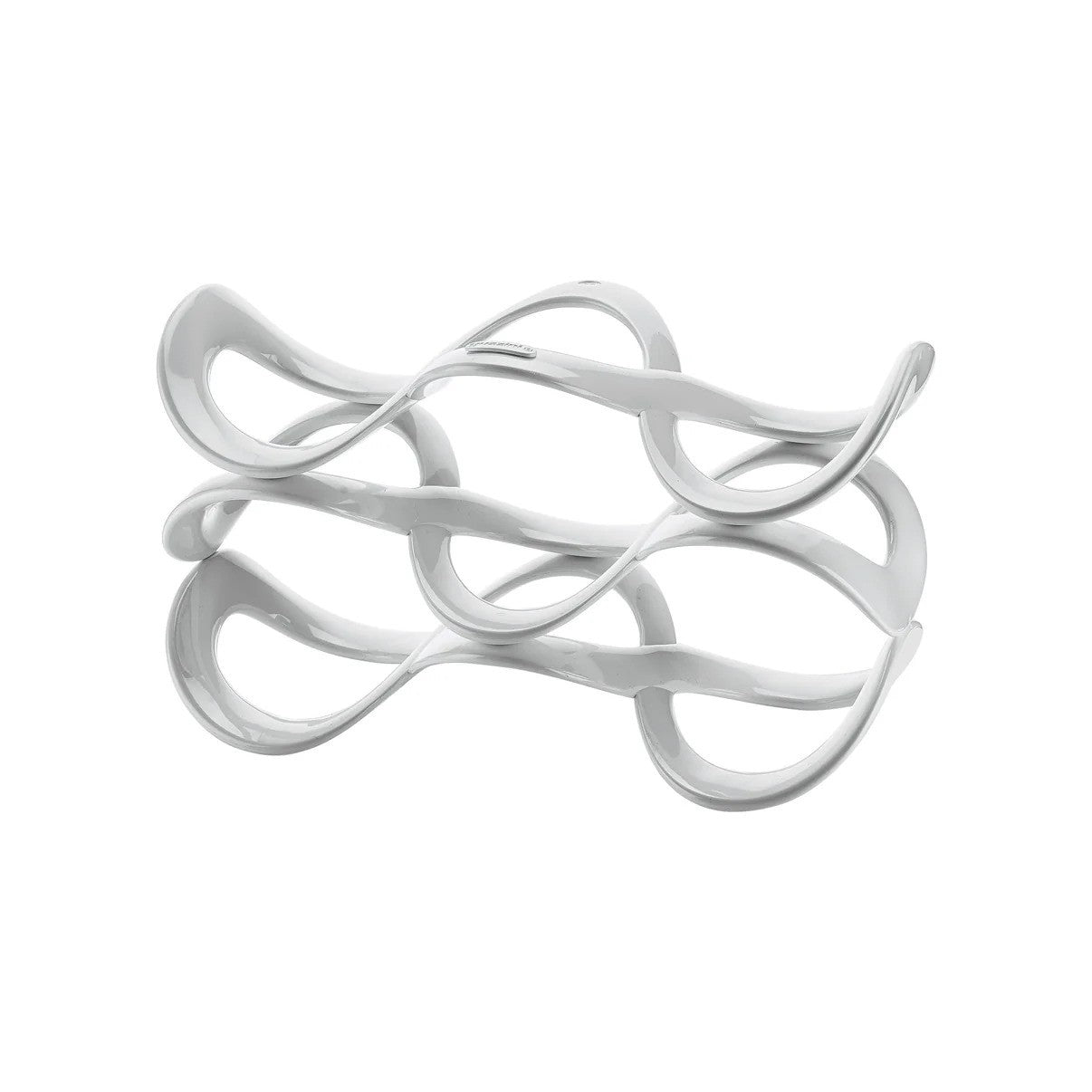 Le porte-bouteilles universel, au design élégant et raffiné, est également un ornement attrayant grâce à sa forme originale : une bande de matériau acrylique, sinueusement entrelacée pour créer une cave à vin capable d'accueillir des bouteilles de différentes tailles.
