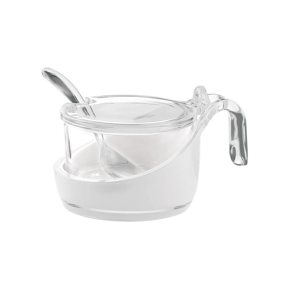 Le serveur à parmesan est agrémenté d'un effet bicolore et de couleurs claires. Elle est dotée d'un récipient en verre et d'un couvercle qui s'ouvre d'une seule main. Vous pouvez également l'utiliser comme distributeur de confiture ou de sucre.