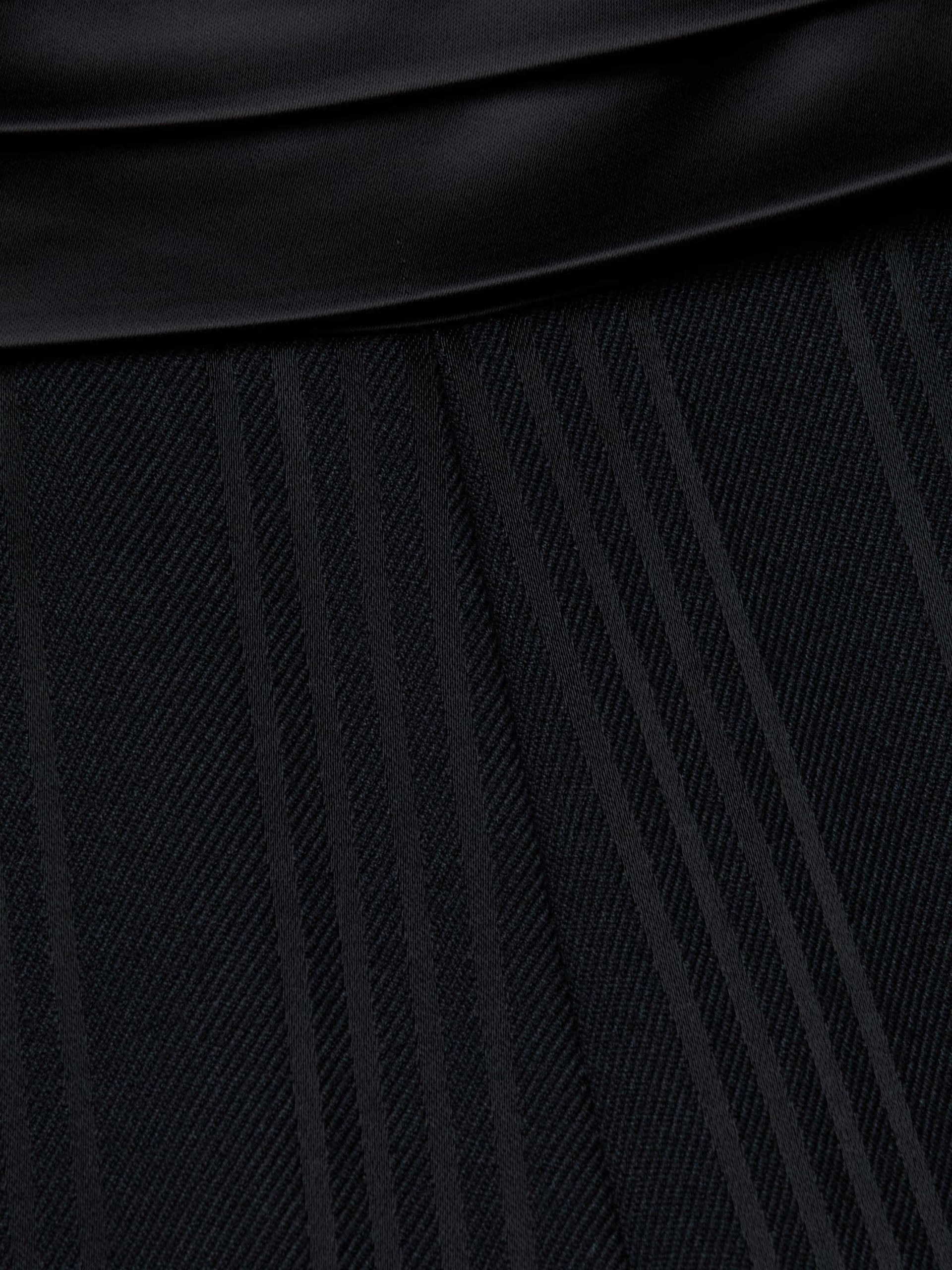 Le pantalon Minerva réinvente le smoking avec une touche haute couture, caractérisée par ses rayures noires discrètes et sa taille cummerbund. Sa coupe fluide à jambes larges ajoute aisance et mouvement, équilibrant une coupe ajustée avec un drapé naturel. Associez-le à son blazer court assorti pour un look de soirée tendance, ou mettez en valeur votre taille en le portant avec un haut simple et des talons.