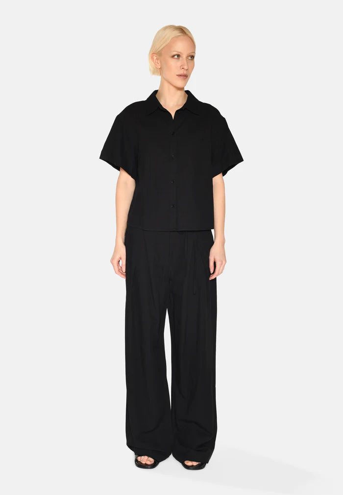 Notre chemise Sage à manches courtes est le choix parfait pour une garde-robe décontractée et élégante. Fabriquée dans un luxueux mélange de viscose, de lin et de coton, cette chemise allie légèreté naturelle et esthétique classique. Avec son col intemporel et son devant boutonné, la chemise est à la fois polyvalente et élégante. Disponible dans les tons neutres de beige et de noir, elle s'adapte à toutes les tenues.