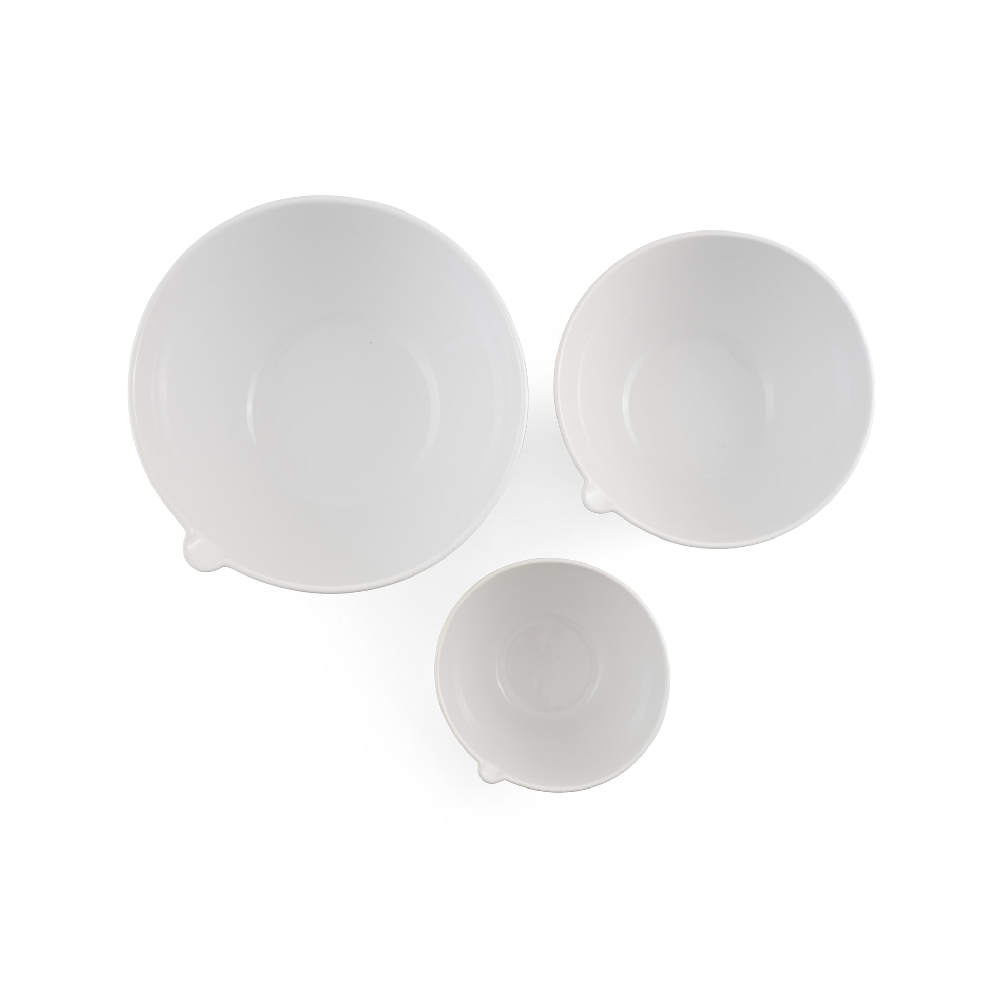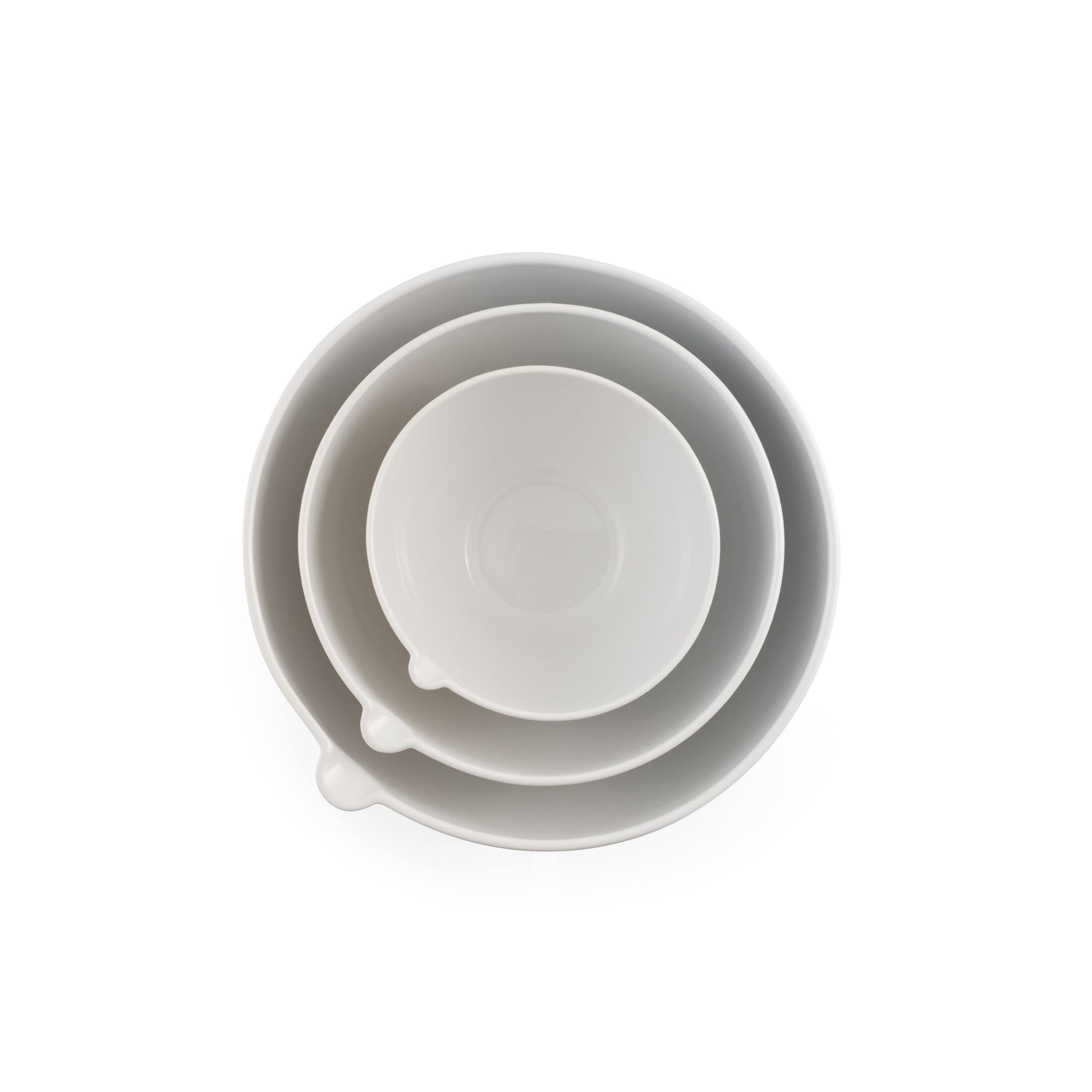 La fonction rencontre le style dans cet indispensable de la cuisine. Les bols mélangeurs emboîtables Duets s'empilent proprement pour faciliter le rangement dans l'armoire. Chaque bol est doté d'un bec verseur, ce qui permet de mesurer et de préparer les aliments dans le même bol.