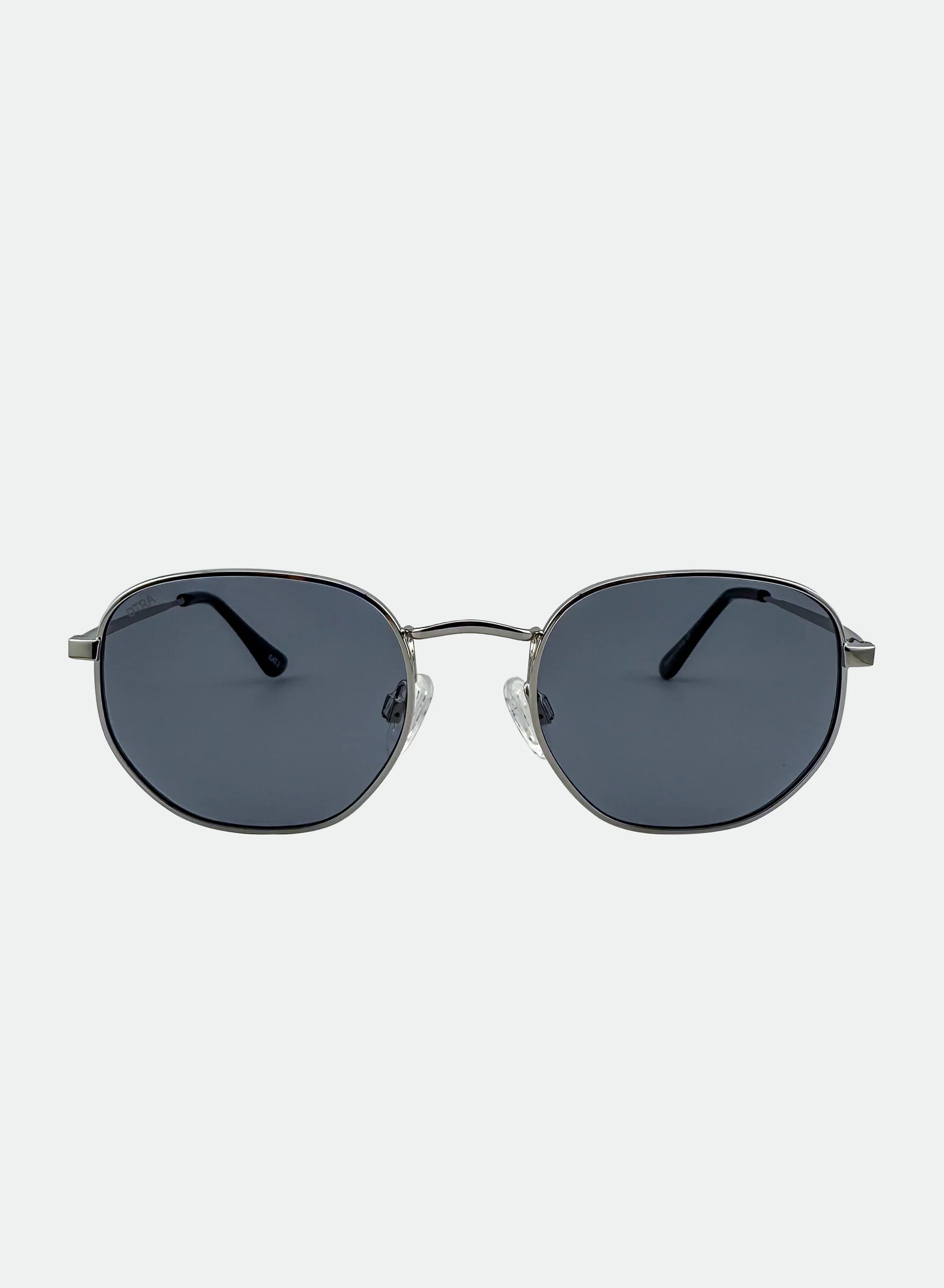 Une monture métallique élégante de forme hexagonale en argent poli, qui apporte une touche moderne à un design classique. Les verres fumés ajoutent une touche discrète et tendance, alliant sophistication et style contemporain.