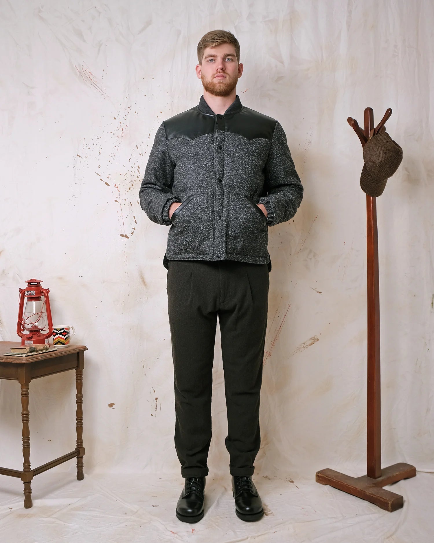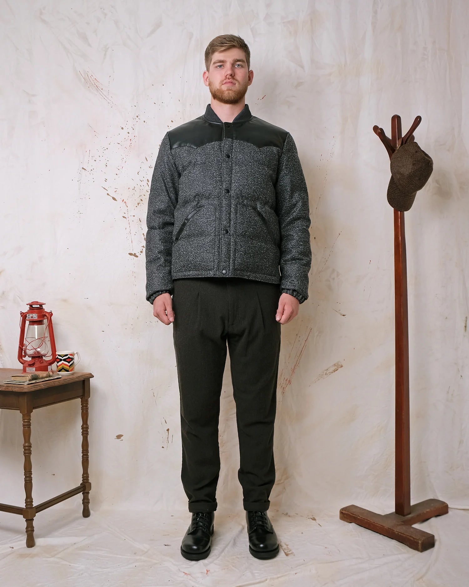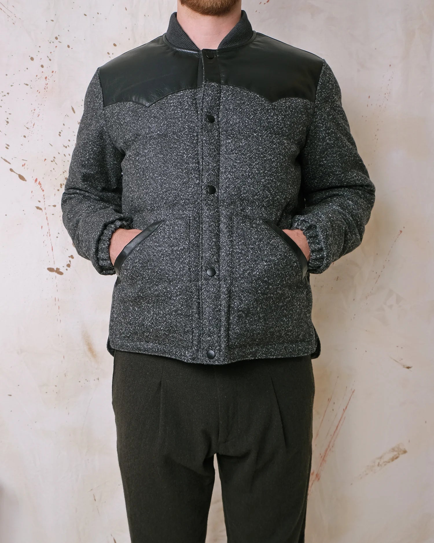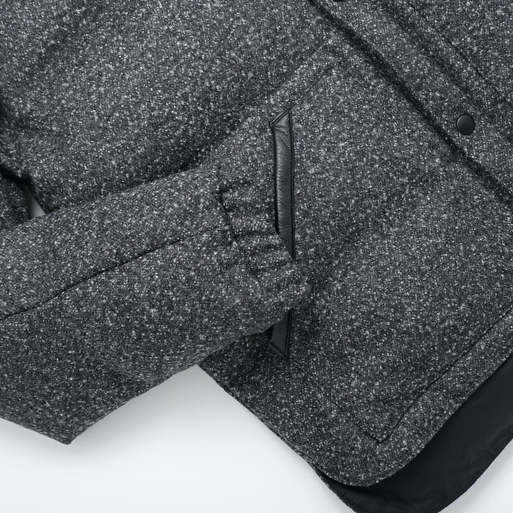 Inspirée du patrimoine et spécialement conçue, la veste en laine marbrée noire est prête pour votre prochaine aventure en plein air. Fabriquée à partir de laine marbrée italienne, elle est dotée d'une isolation d'un pouvoir gonflant de 700 (90 % duvet, 10 % plumes) pour une chaleur optimale. Le cuir véritable sur l'empiècement avant et arrière ajoute à sa durabilité. Des poches pour les mains avec bordure en cuir, un col côtelé et des boutons-pression métalliques noirs complètent cette veste au style fonctionnel.