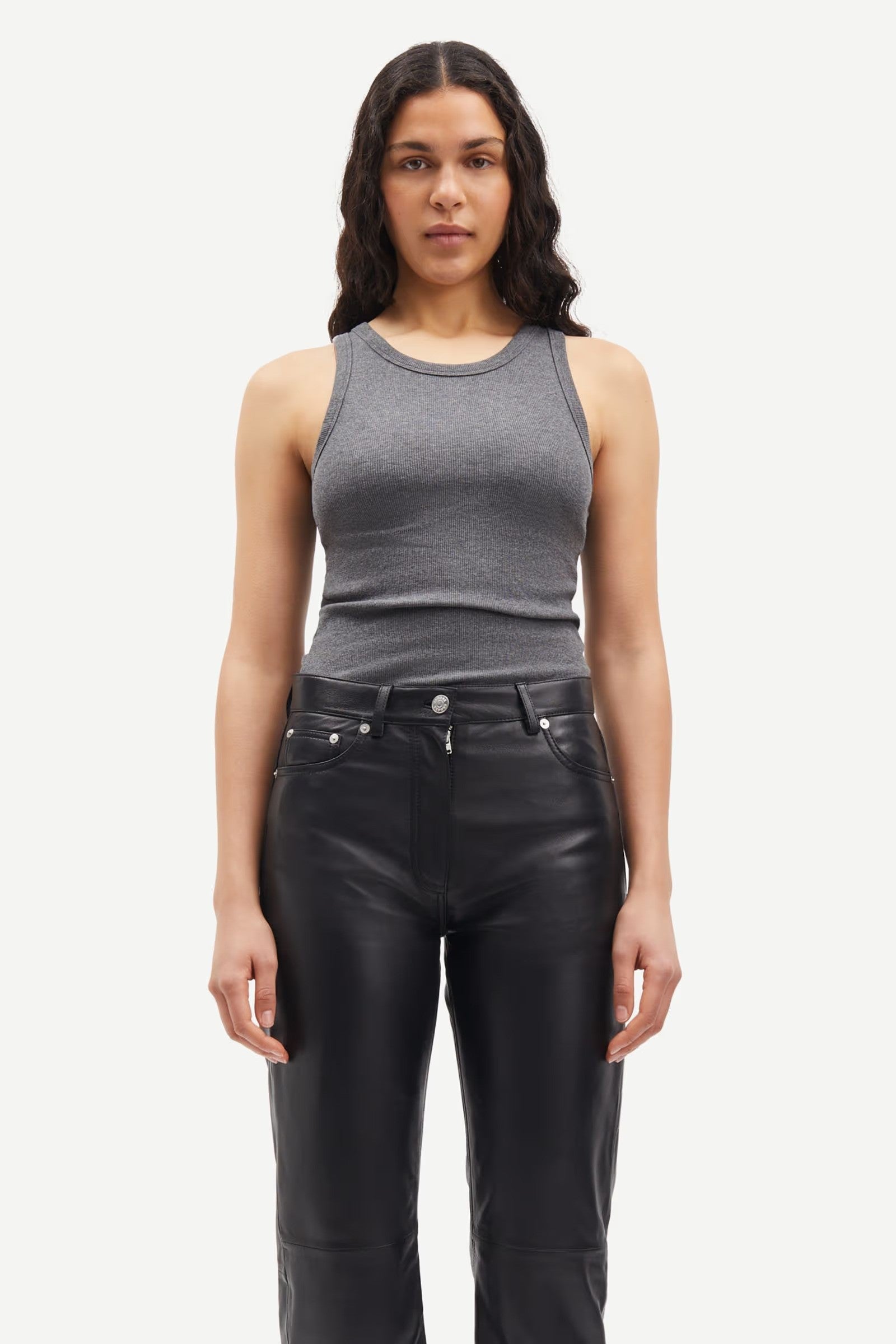 Débardeur en tricot côtelé avec une coupe ajustée. Matière principale en coton biologique élastique. Ce produit contient du coton biologique cultivé sans OGM ni produits chimiques dangereux.