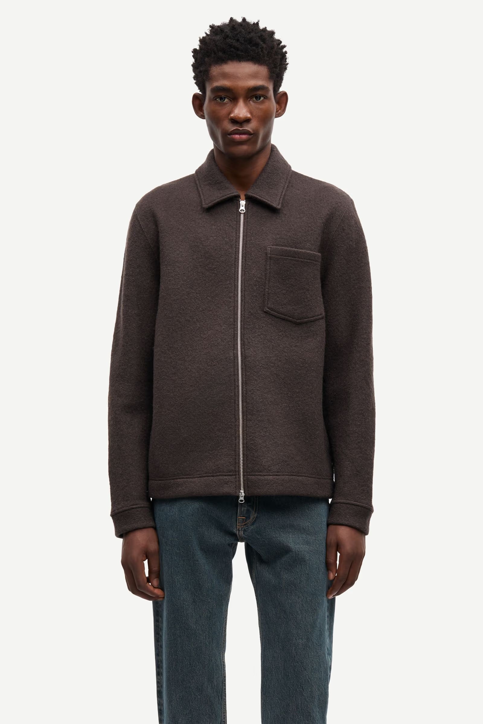 Cardigan coupe regular avec fermeture zippée double. Col pointu, poche de poitrine. Tissu de sweat-shirt feutré 100 % laine.