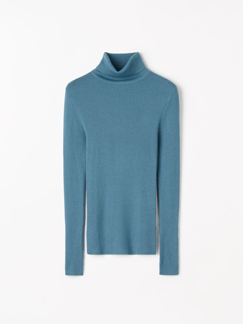 Tiger of Sweden | Le col roulé en mérinos côtelé Caprio - Bleu