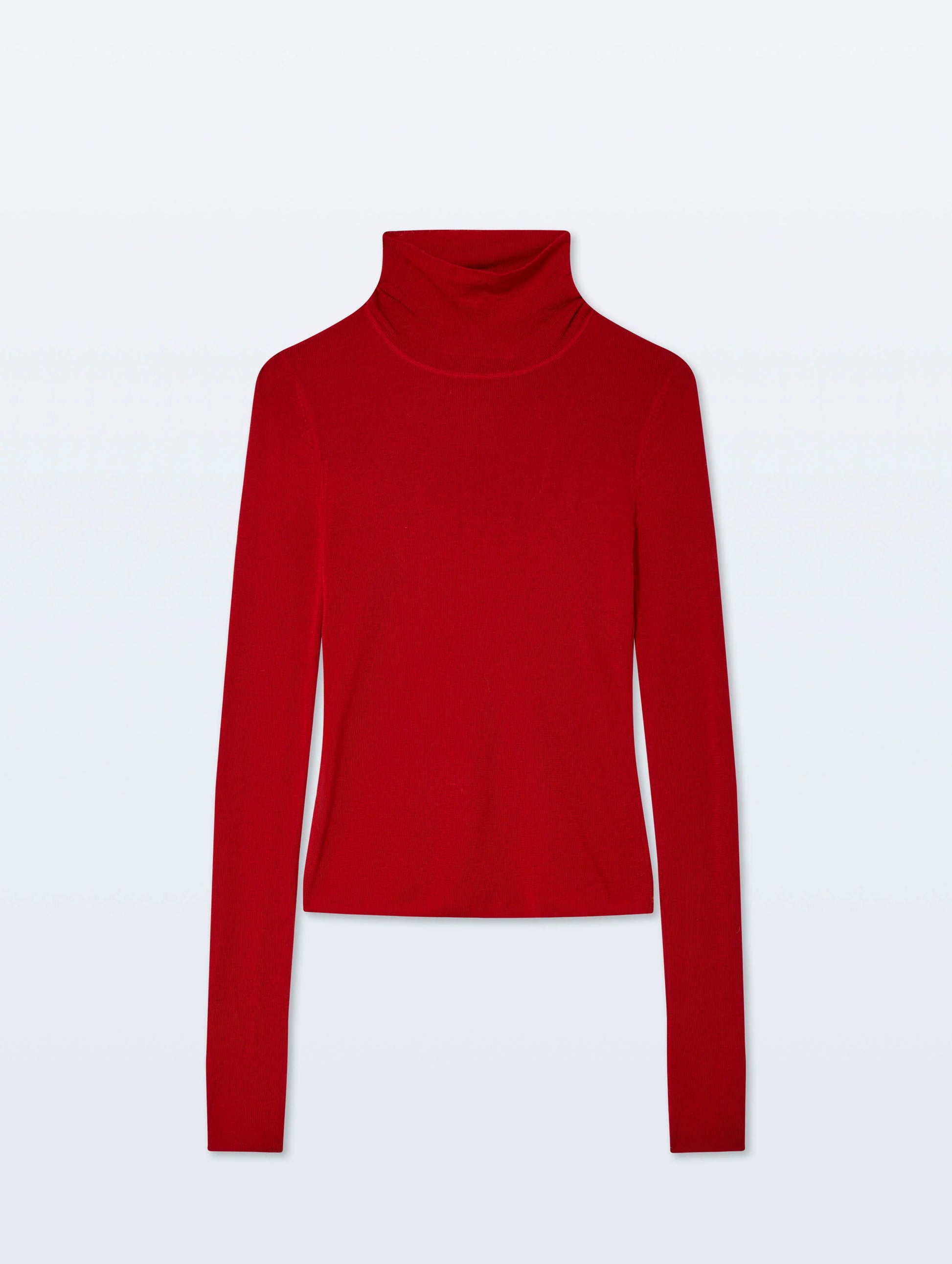 White + Warren | Pull à col roulé ajusté en laine mérinos extra-fine - Rouge cardinal